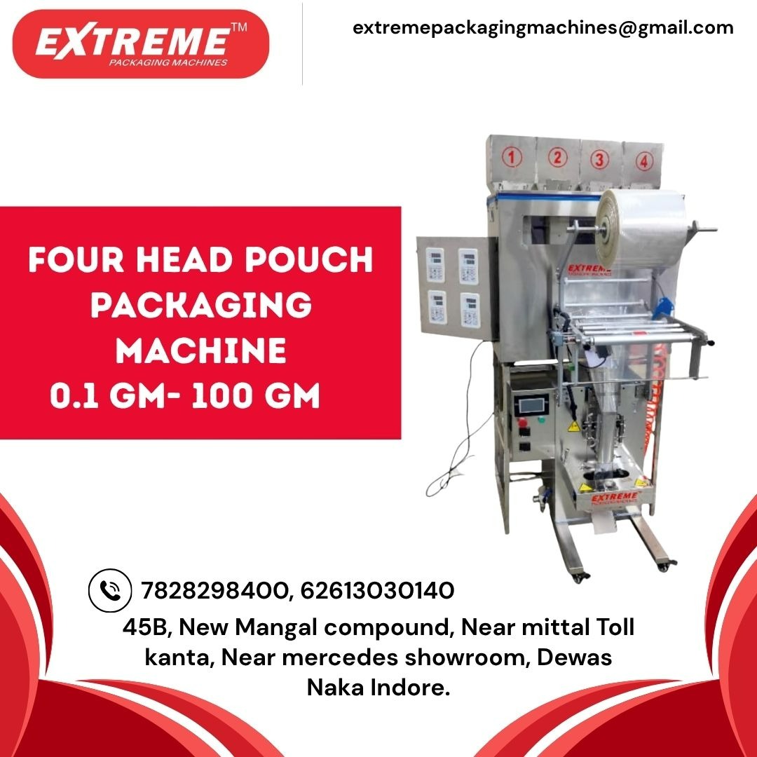 Looking for a reliable Four Head Pouch Packaging Machine Distributor in Indore? Extreme Packaging Machines is one of the most trusted names, offering high-performance and durable packaging machines designed to increase efficiency and reduce manual effort. With years of expertise and a strong presence in the industrial packaging segment, we provide advanced solutions that meet the needs of food, pharmaceutical, chemical, and FMCG industries.