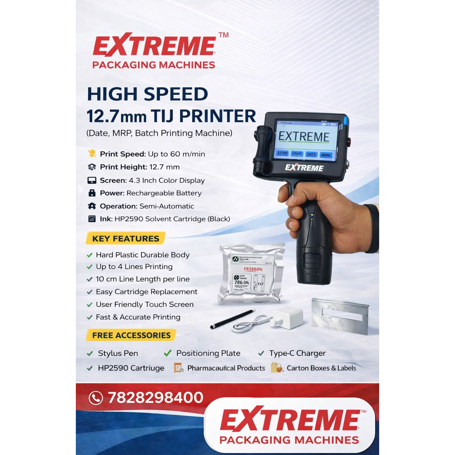 If you’re searching for a TIJ Printer Distributor in Indore MP for Date, MRP, Batch & Coding, Extreme Packaging Machines brings you a reliable High Speed 12.7mm TIJ Printer built for clean, sharp, and fast printing on multiple packaging types. Whether you pack pouches, cartons, bottles, or pharma products, this TIJ coding solution helps you maintain consistent print quality and production speed.